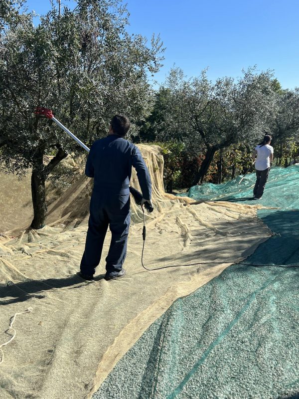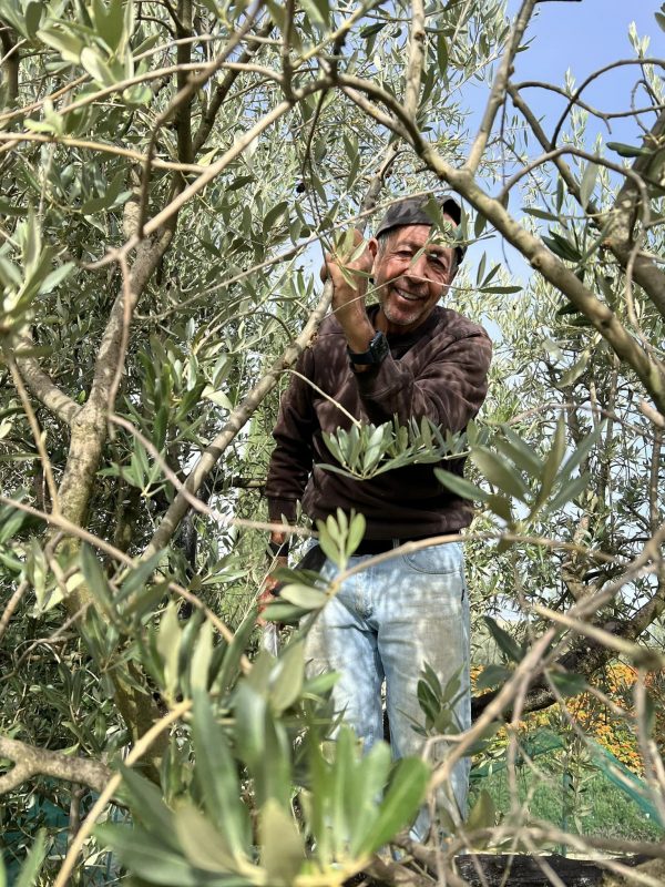 Joe shaking the olives from the trees.