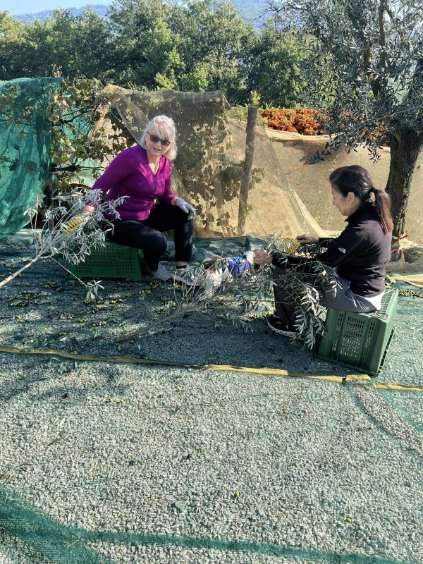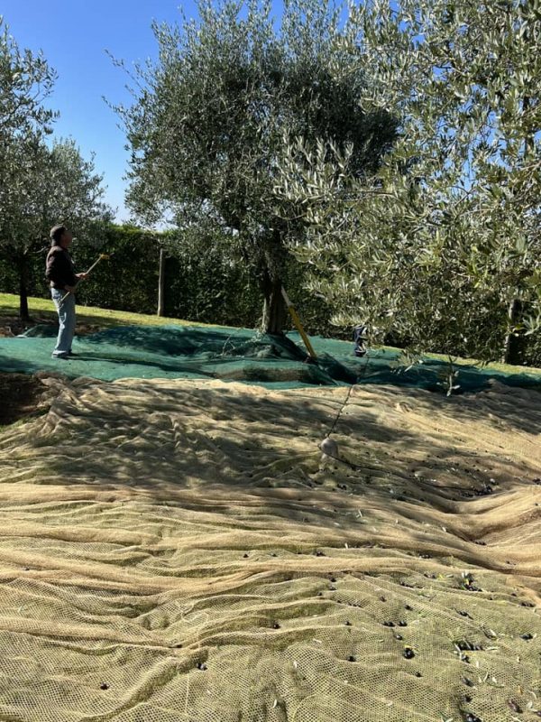 Olive harvest starts at daybreak each day. The hardest part for me is the laying of the nets, especially on the slopes.