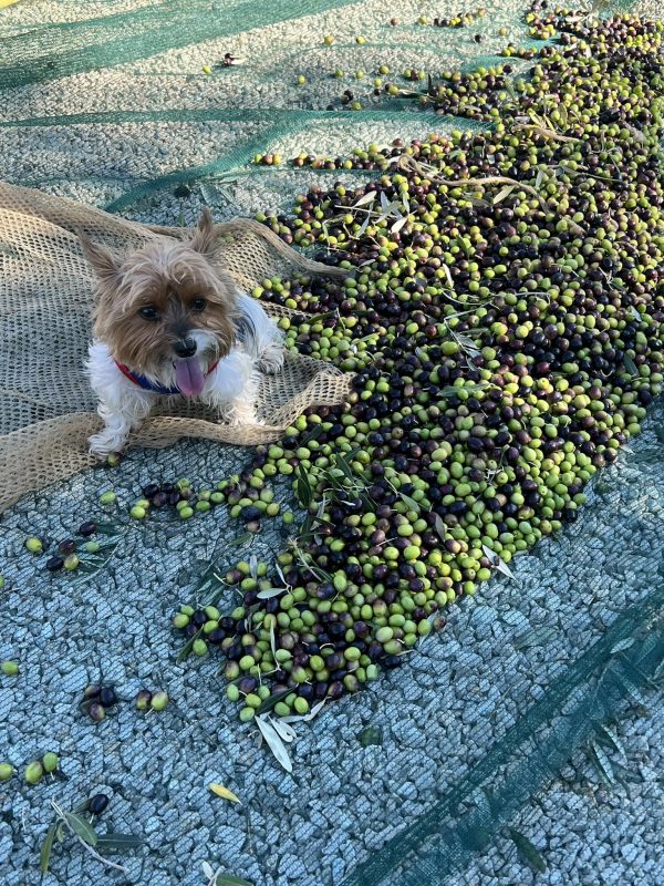 Louie climbing into the trees to get every last olive!