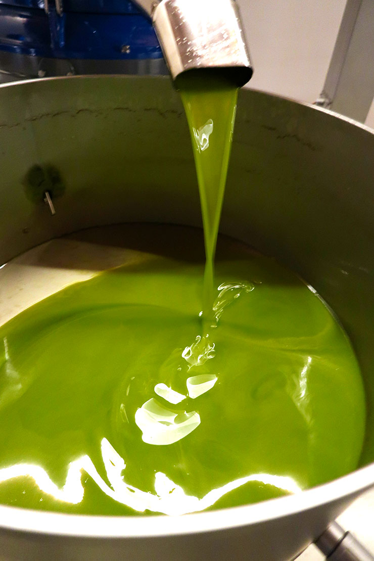 The past few years, it has just been my husband, myself, and our handyman harvesting our hundred trees over three days. This year, good friends from Canada flew over to join in the fun to give us a hand. By day three, we were a well-oiled machine, and it was great fun to share the harvesting experience with friends. There truly is nothing more satisfying than being able to create your own organic, delicious olive oil. I wish everyone could taste freshly pressed oil to understand just how amazing it really is! This year we had a new olive mill open up just down the street from us, which made things even more manageable. We had only a short ride to take our crates of olives to the mill, and we were able to press our olives each day, which results in better tasting oil. Frantoia Fratini is a gorgeous mill run by a wonderful family, and our experience with them was very positive. They also press their own olive oil, which is delicious tasting.