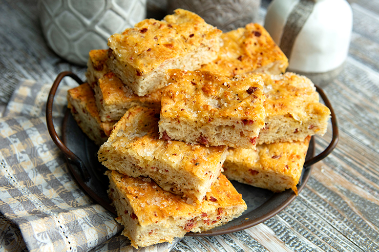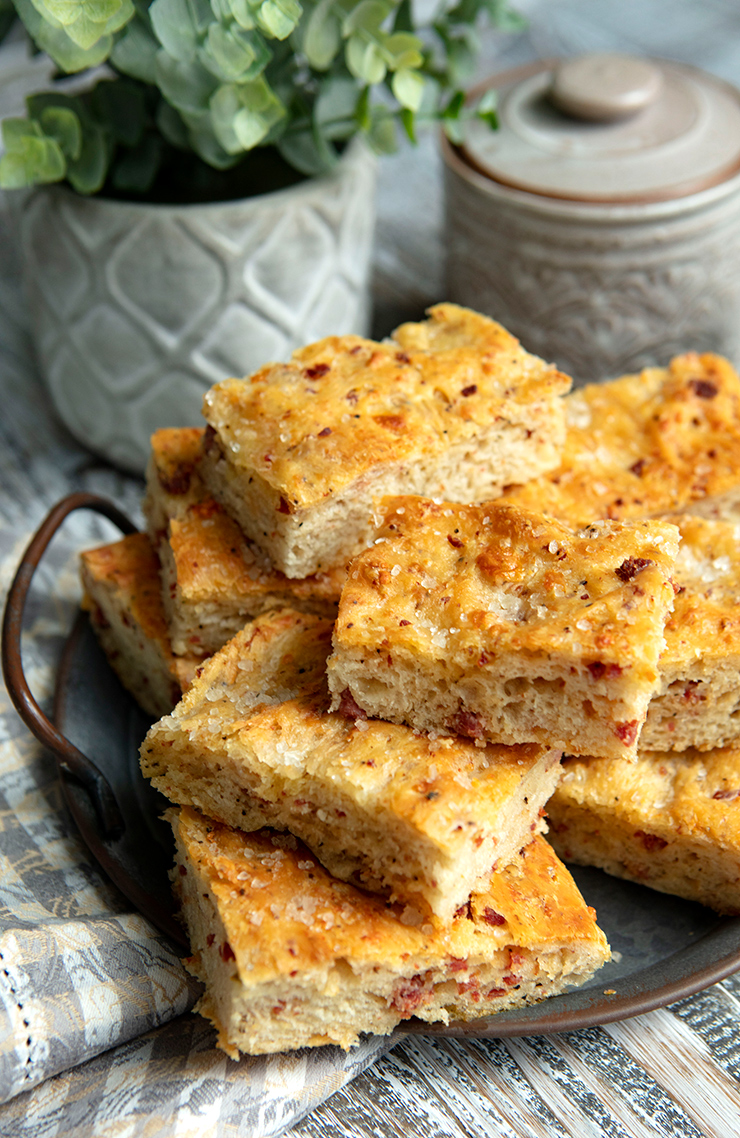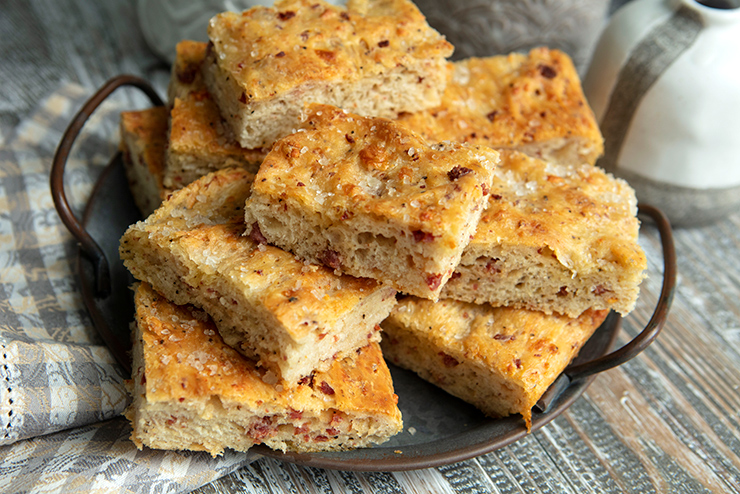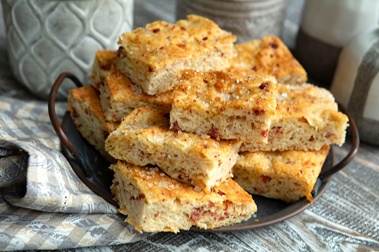 Focaccia Studded With Salami & Pecorino Romano Cheese