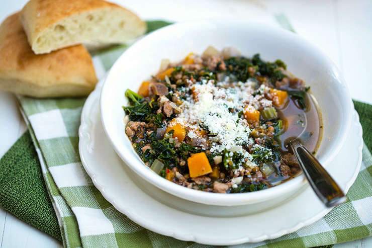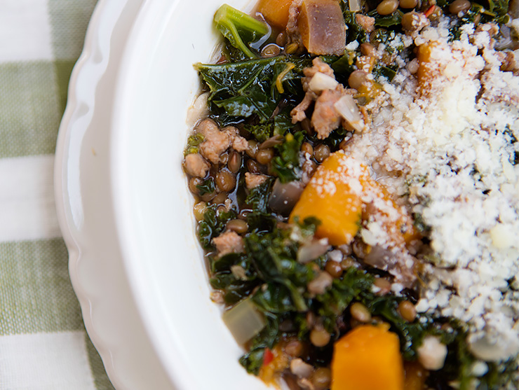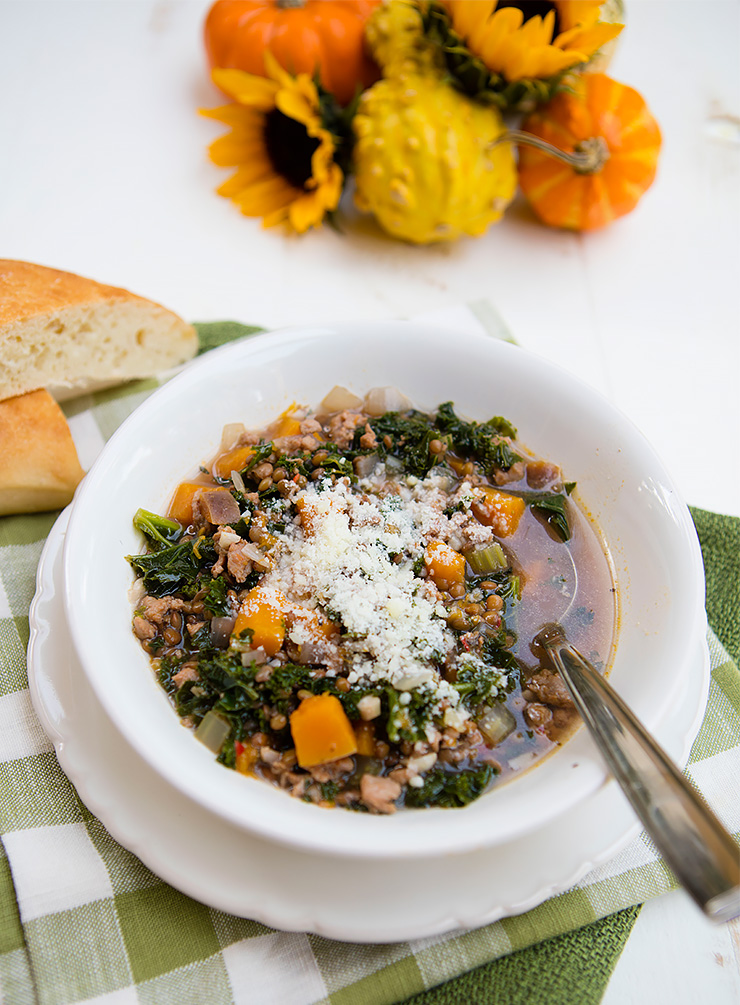 Butternut Squash, Kale, Sausage & Lentil Soup