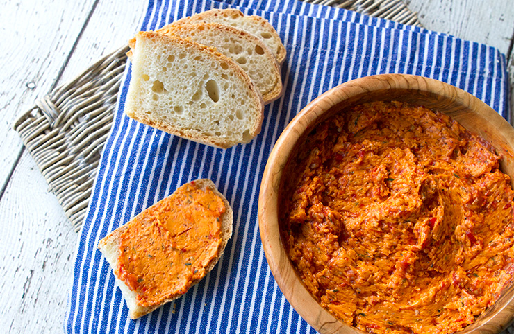 This butter uses fresh cherry tomatoes that are roasted until they blister and just begin to blacken. The tomatoes are blended with softened butter and fresh herbs. This butter would be delicious on grilled fish or chicken, spread on bread as a base for a tasty panini, brushed on toasted crostini as an appetizer, or even tossed with hot pasta or rice.