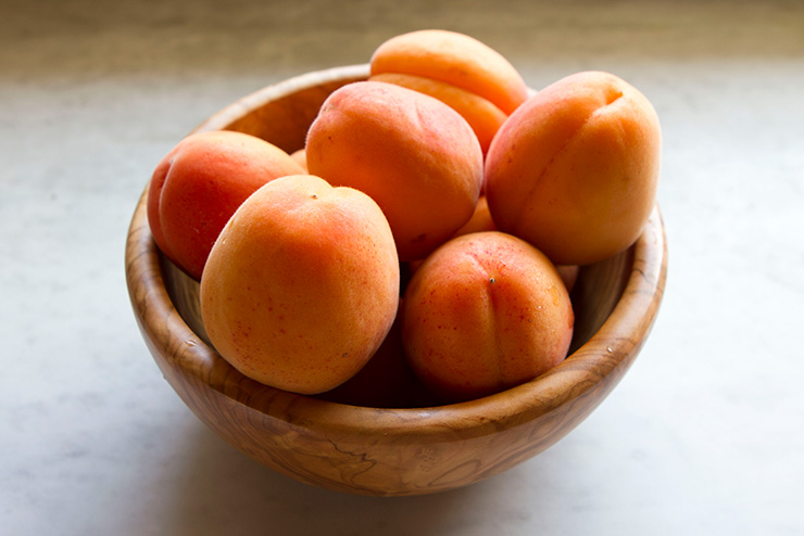 I was very happy this past week to see that fresh local apricots have started to arrive in our local markets. Apricots are the first stone fruit to come, and we must wait another month or more for the rest, peaches, plums, and nectarines to follow. I have always loved apricots because they have a slight tang to their sweetness. They also cook up well in baked goods, their soft skins not even requiring peeling.