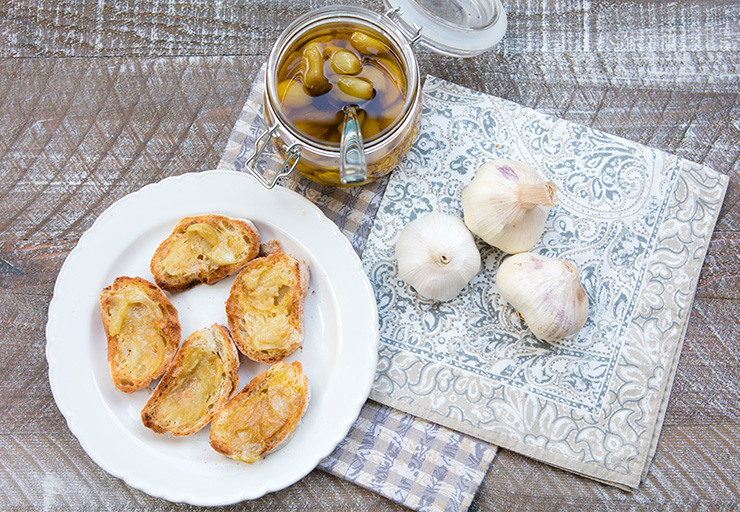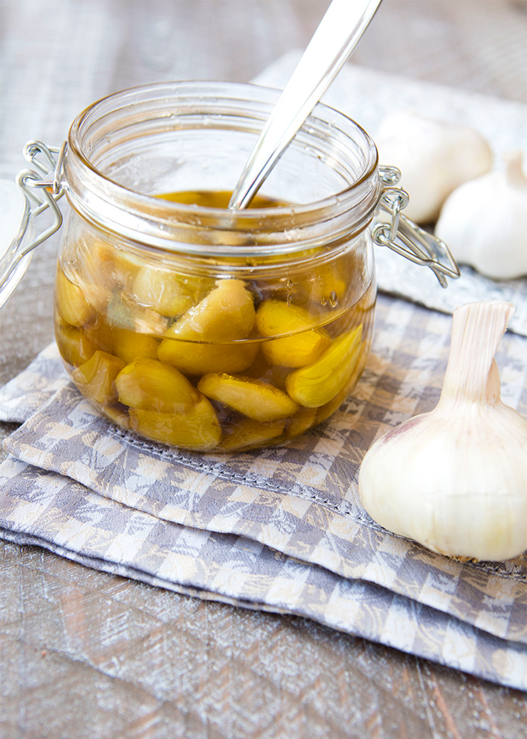 I always have a jar of this garlic in my refrigerator and use it daily. I stir it into soups, stews, and sauces, spread it across grilled meat or poultry, and my favorite way to enjoy it is slathered on a slice of warm, grilled Italian bread with a sprinkling of sea salt. The garlic and oil are also wonderful stirred into mashed potatoes or spread on bread when making sandwiches. The options for using this earthy flavored nectar are truly endless.