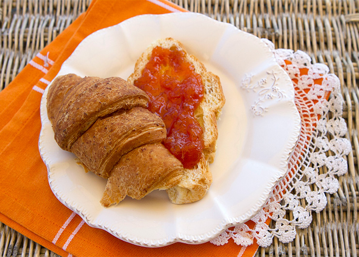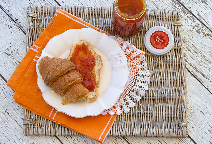 I recently bought two plump Kabocha pumpkins at our local grocery store and thought I’d try making Pumpkin Jam. This is the first time I have ever used pumpkin in making jam, but it turned out great. I added the typical fall spices one associates with pumpkins such as cloves and cinnamon, so the jam just tastes like fall to me. This jam is delicious slathered on toast in the morning but is also delicious used in making Jam Crostata, Jam Oat Bars, or even thumbprint cookies.