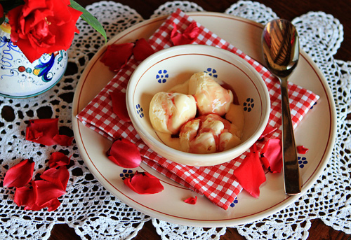 A light, sweet syrup made with fresh rose petals that is delicious on top of gelato.