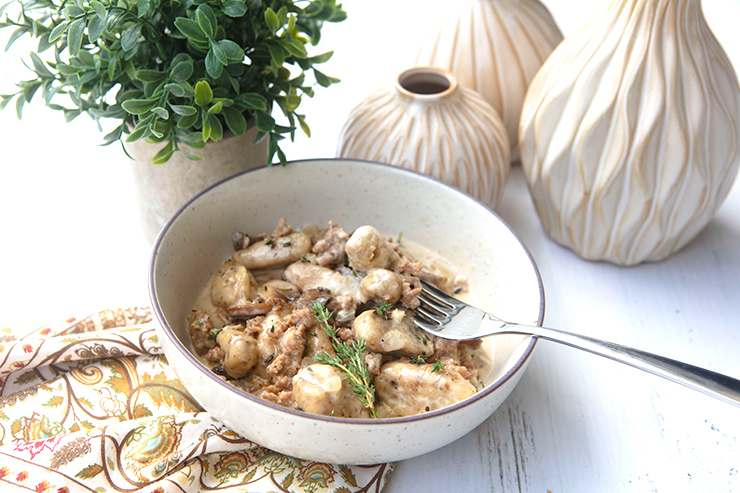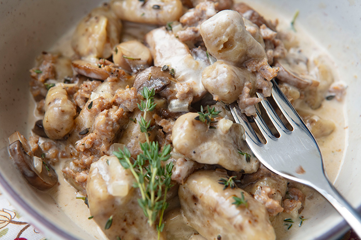 Potato Gnocchi With Sausage, Mushroom Cream Sauce {Gnocchi alla Norcina}