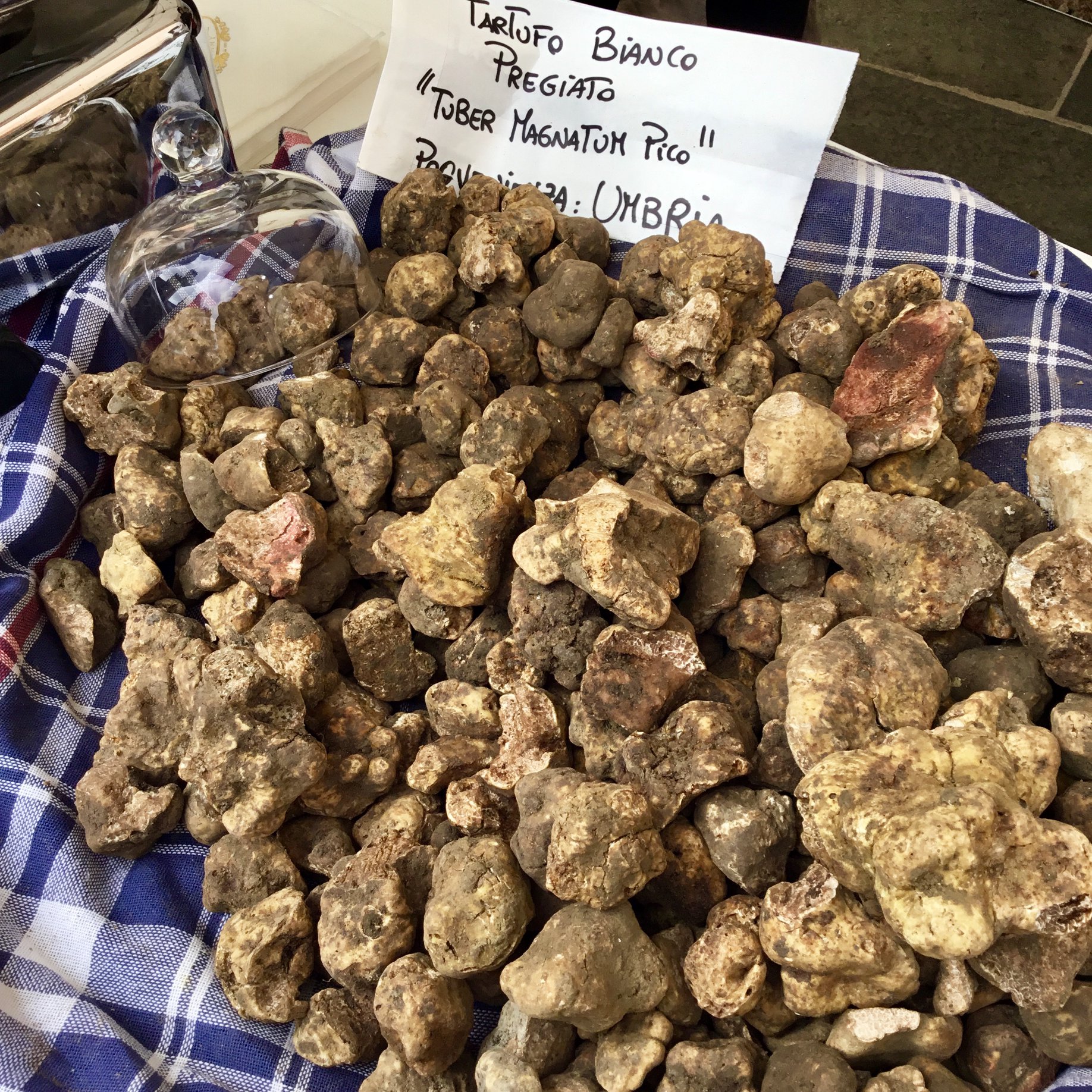 At the festival in Pietralunga, truffles and locally grown potatoes were the stars, and you could buy both ingredients, as well as try a number of different dishes using one or both ingredients. We ended up eating lunch at a local restaurant, and I ordered the gnocchi with white truffles.