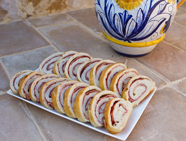 One of the appetizers we were served that evening was this Stromboli like item that was bread rolled around cured meat and cheese before baking. It was really delicious and the next week I set out to create my own version.