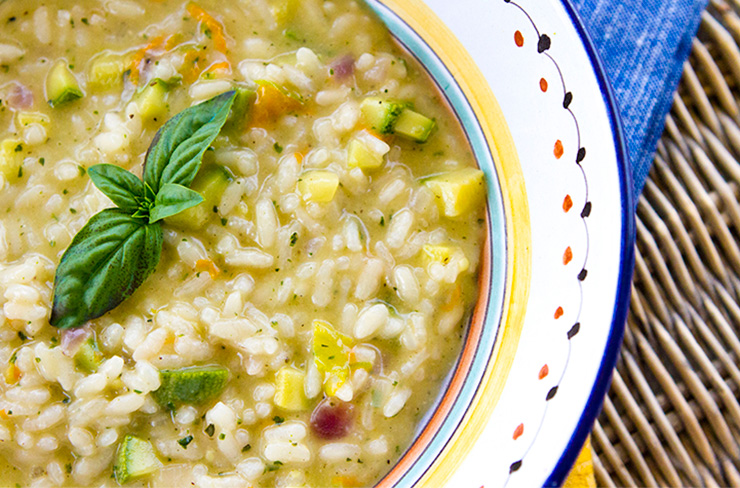 Summer Risotto With Zucchini, Zucchini Flowers & Pesto
