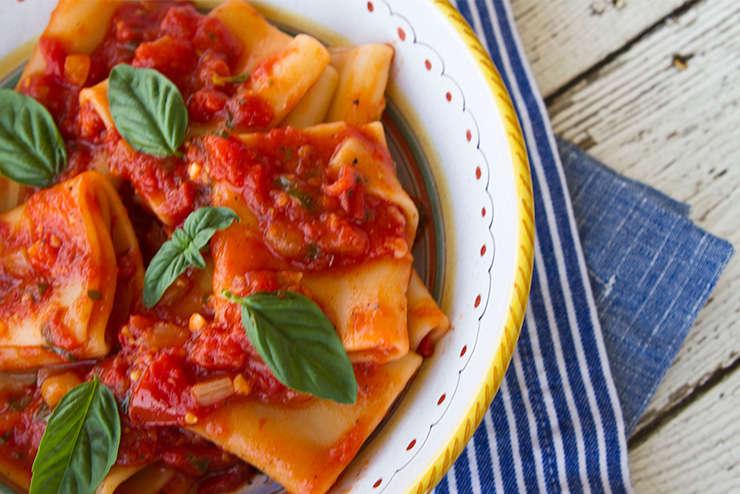 I have to say that my preference is seasonal, and when fresh tomatoes are in season, there is nothing better than a barely cooked sauce that is all about the tomatoes. However, during cooler months, I love to prepare a sauce that simmers on the stove for hours, flavored with meat and vegetables.