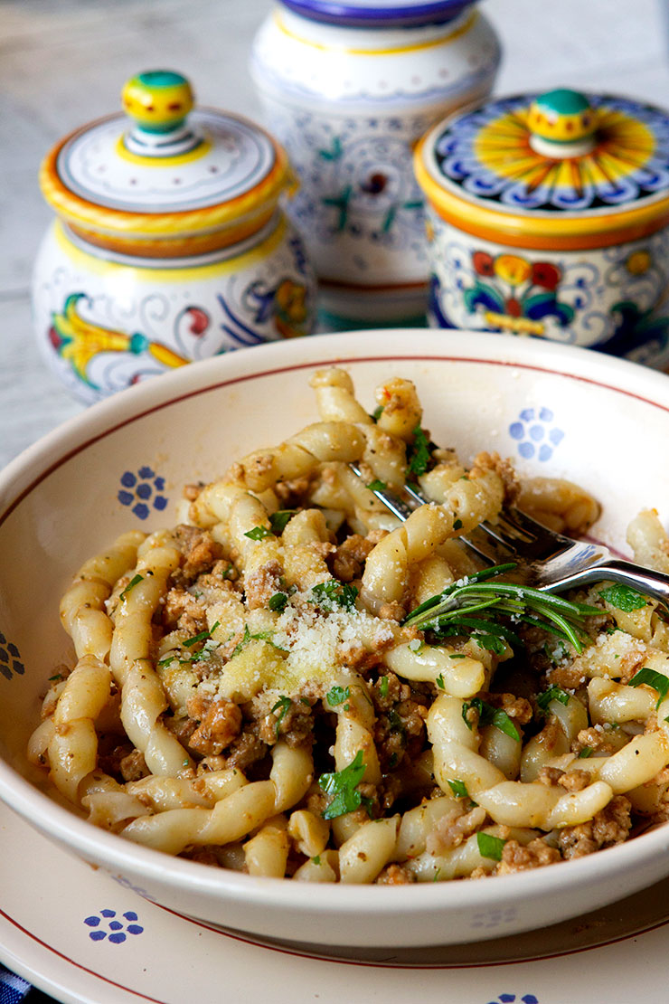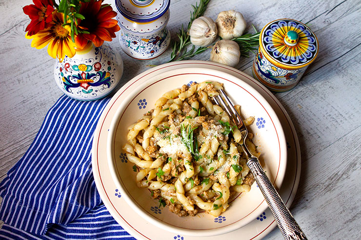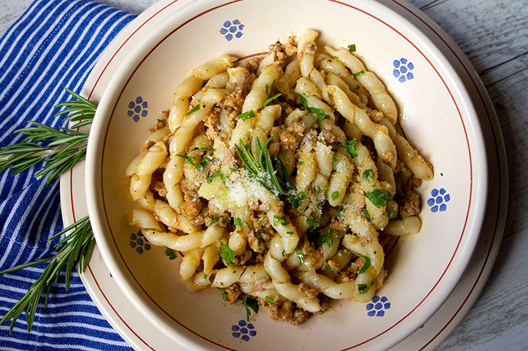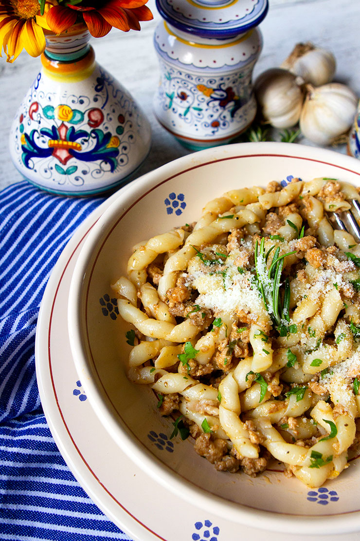 This recipe is one I first tasted on a trip to Piemonte, and I fell in love at first bite. I came home and worked on perfecting my own version of white rabbit ragu, and I ended up with this recipe. I decided to make this sauce in my Instant Pot this past week on served it on busiate pasta, a twisted pasta shape that worked perfectly with my sauce. The recipe worked really well in my Instant Pot, although I had to turn on the Saute mode at the end to thicken the sauce. This sauce works well on just about any pasta shape, and both fresh and dried pasta.