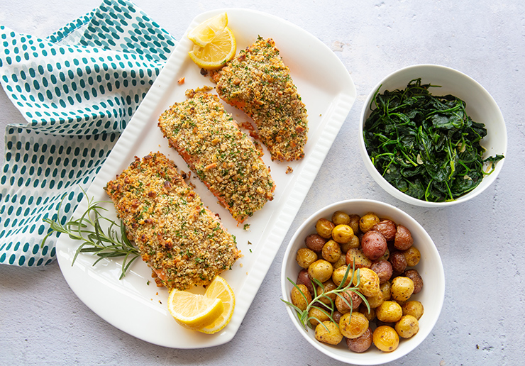 A nutty crumb crust helps to seal in moistness while adding flavor to fresh salmon fillets.