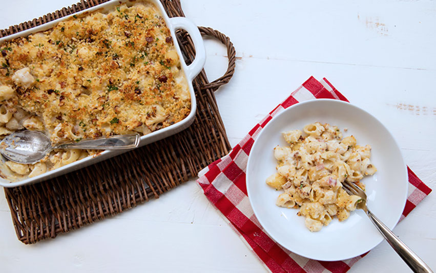 Cheesy Roasted Cauliflower & Bacon Baked Shells