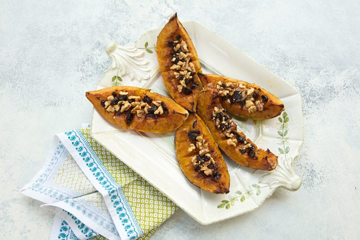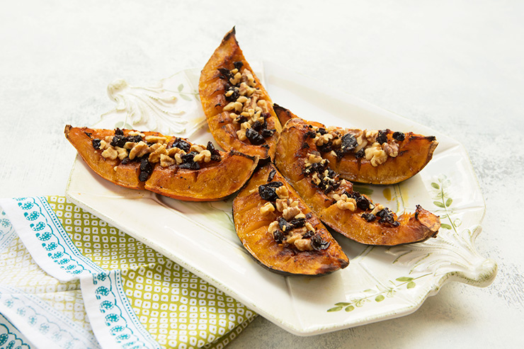 Caramelized Roasted Acorn Squash Wedges With Dried Cherries & Walnuts