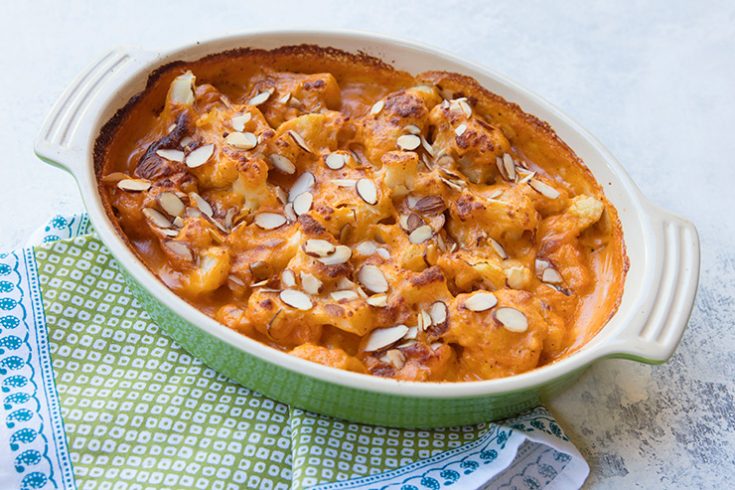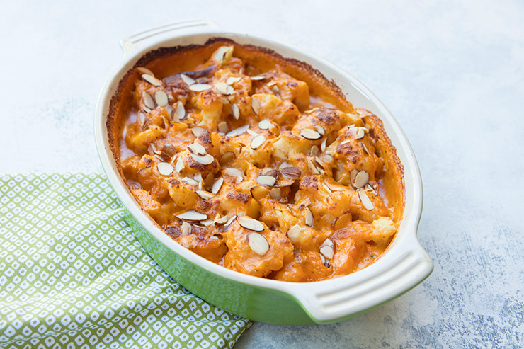 - Place the cauliflower in an oven-proof casserole dish and pour the sauce on top.