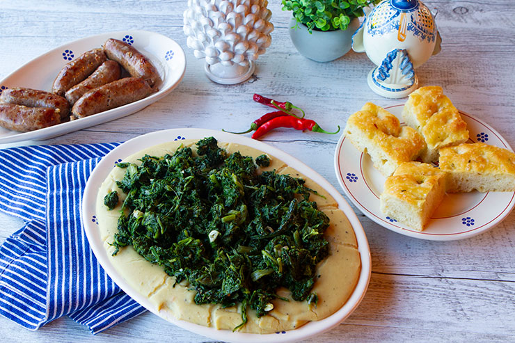 Pugliese cuisine also has its roots in ‘cucina povera”, and this recipe is a very good example of that. It is basically a mash of cooked dried java beans, which is served topped with sautéed cicoria.