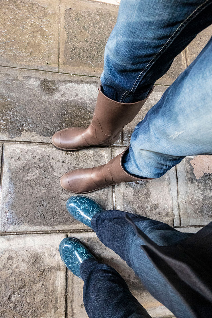 Our reservations were for Tuesday and Wednesday night, and over the weekend all of Italy was hit with torrential rainstorms. Venice began to flood Sunday, and by Monday the water in Piazza San Marco was thigh high. Of course, this was quite concerning to us as our hotel is just a few hundred meters from San Marco! We called the hotel to see if we could change our reservation only to be told that our reservation was nonrefundable and that we shouldn’t worry as the waters only rise at high tide twice a day and affect only a small percentage of Venice. We went back and forth trying to decide if we should cancel our trip and finally early Tuesday morning we decided to go and see just how bad things were. We packed our garden boots and figured if the water was too much of a problem, we could stay just one night and return home the following day.