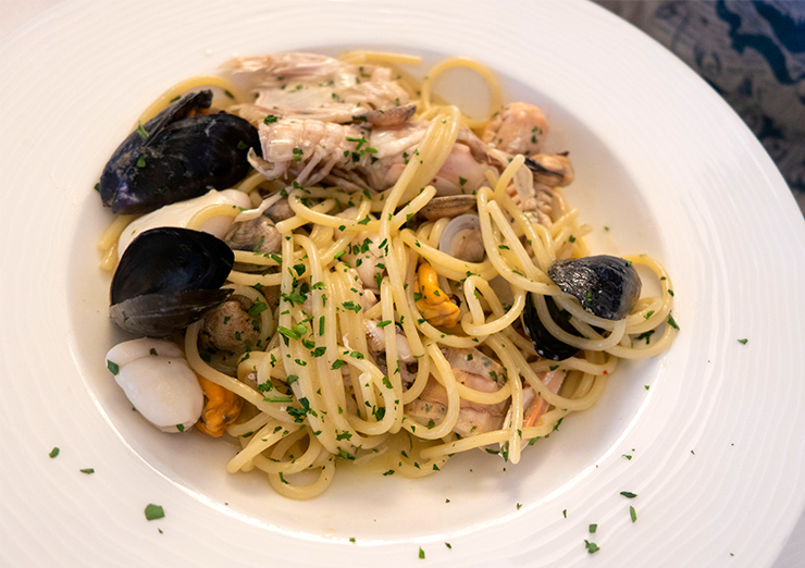 Pasta with mixed seafood.