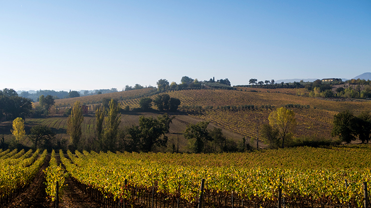 Driving through the Umbrian countryside. The grapevines are all changing colors with the season.