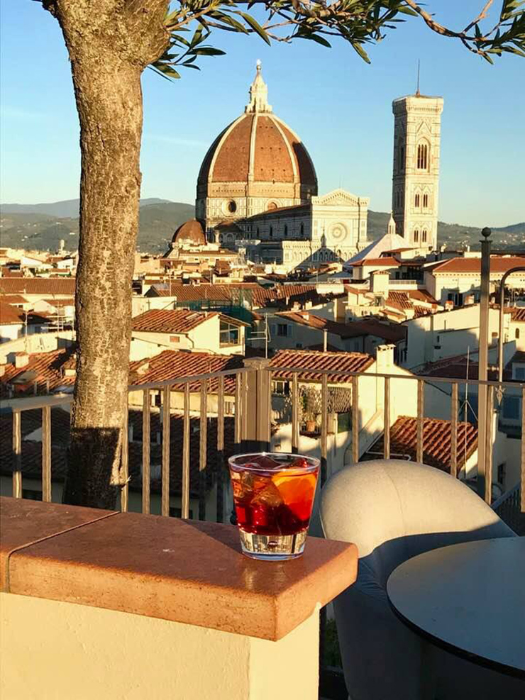 We like to stay at the Hotel Baglioni which is a large hotel right across from the train station because the staff is great, we can drop off the car and they take care of the parking, the rooms are lovely, and there is the best rooftop bar with views overlooking Florence.