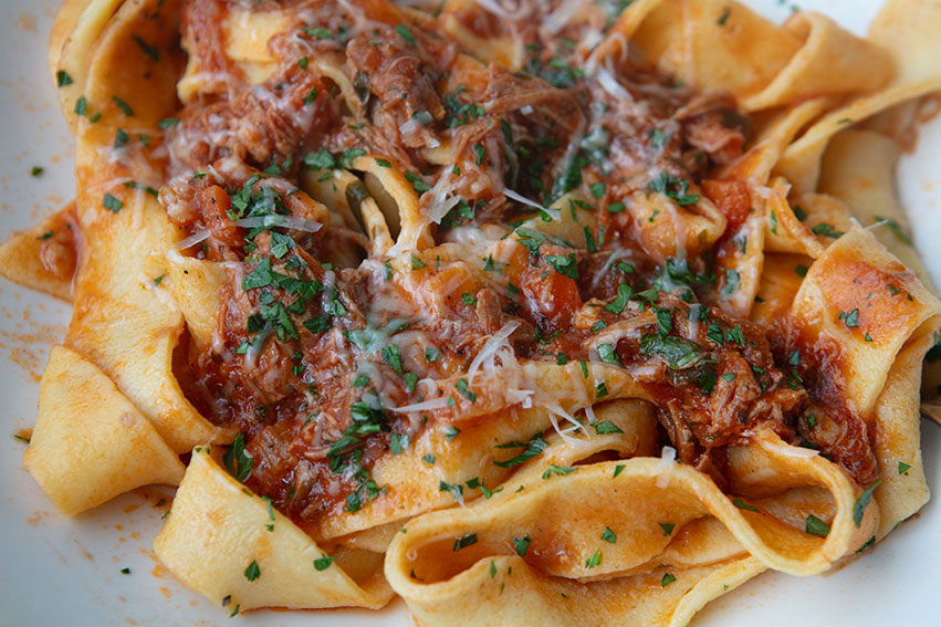 A rich Venetian duck ragu flavored with cinnamon and orange that is commonly served on pappardelle pasta.