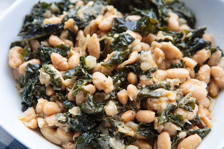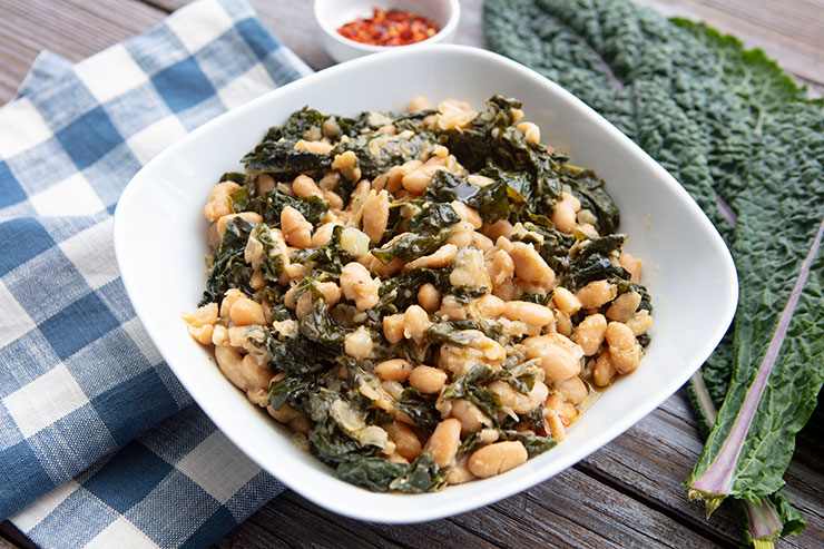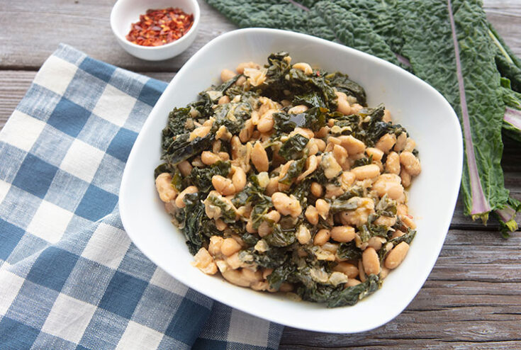 I chose to use Tuscan kale in my version, but regular kale, escarole, or Swiss Chard also works. Choose canned beans that hold their shape, or cook your own from scratch. This dish can be served as is with just a drizzle of quality extra virgin olive oil or topped with a sprinkling of grated Pecorino Romano or Parmesan cheese.
