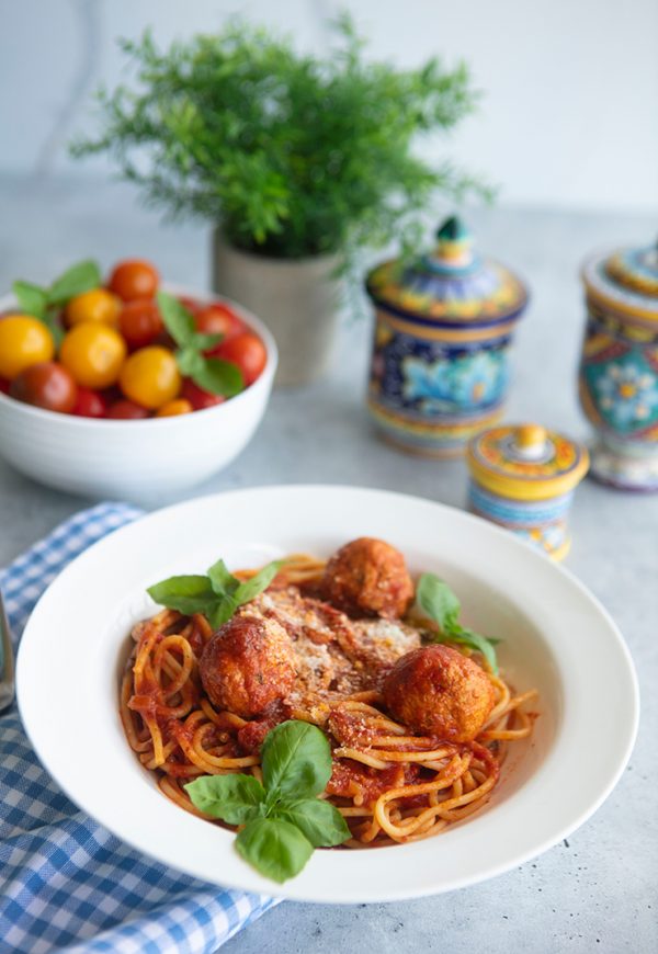 - Serve the pasta in individual bowl with a little additional sauce, and a few meatballs.