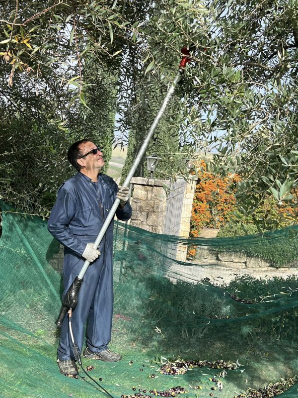 Joe shaking the olives from the trees.