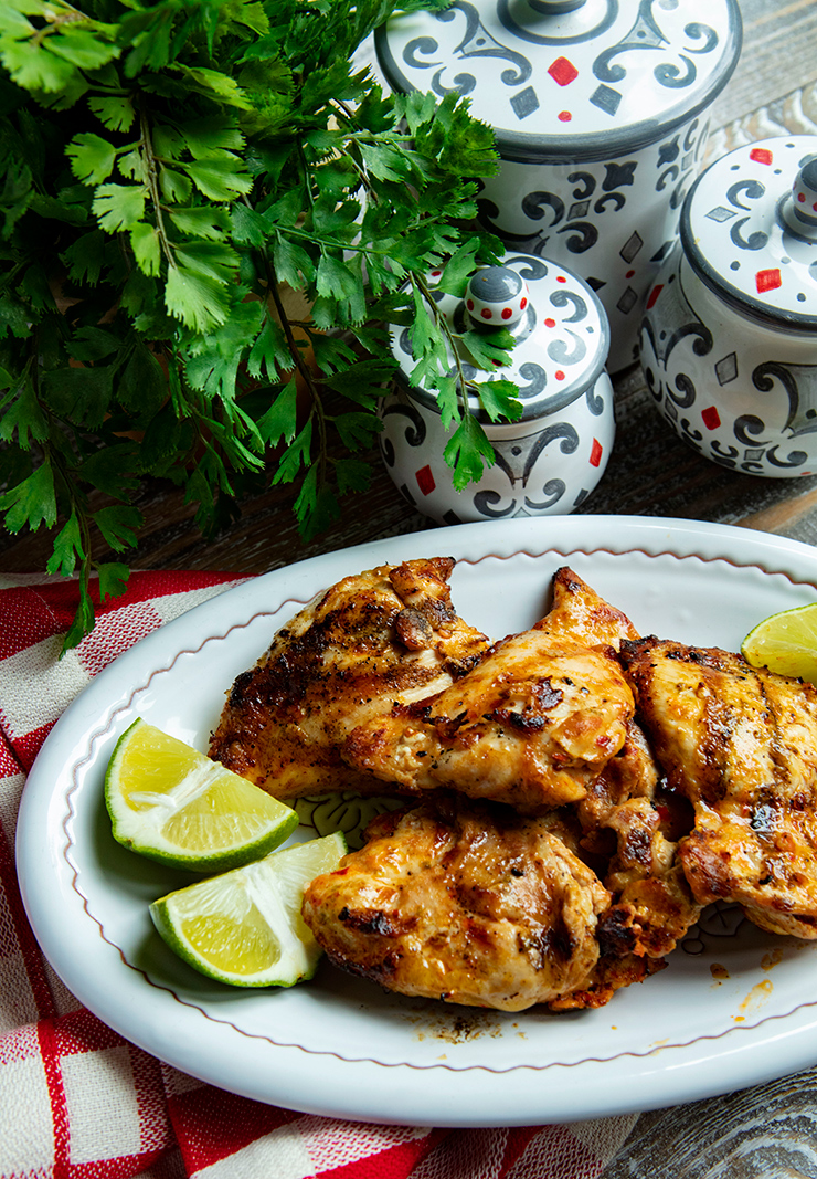 This easy marinade uses my Calabrian chili pepper pesto and fresh limes, garlic, and olive oil. The limes help to tenderize the chicken and add brightness, while the chili pepper pesto adds a gentle heat. I order from Calabrian chili pesto from Amazon.com and always have a few jars in my pantry. You could use chicken breasts in place of chicken thighs, however I find that the thighs work really well with this marinade.