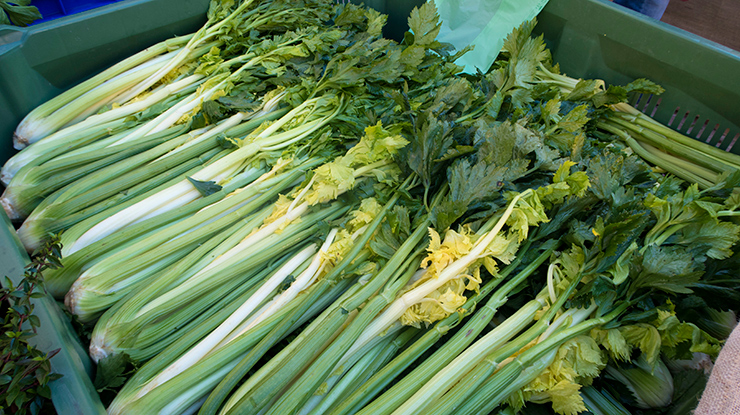 Bins of black celery.
