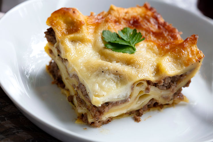 This is a tomato-free recipe that consists of a rich beef sauce and a creamy béchamel layered between delicate pasta sheets.
